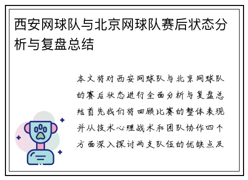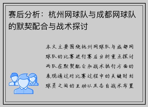 本文将深入探讨重庆网球队的进攻策略,解析团队如何通过战术与技巧的完美结合来提升比赛表现。首先,我们将从战术的制定和执行、球员个体技术素养、团队配合及心理素质等四个方面进行详细阐述。在战术方面,重庆网球队如何根据对手特点制定不同的进攻策略,以及在比赛中灵活调整;在技术层面,包括发球、回球及截击等基本技...
